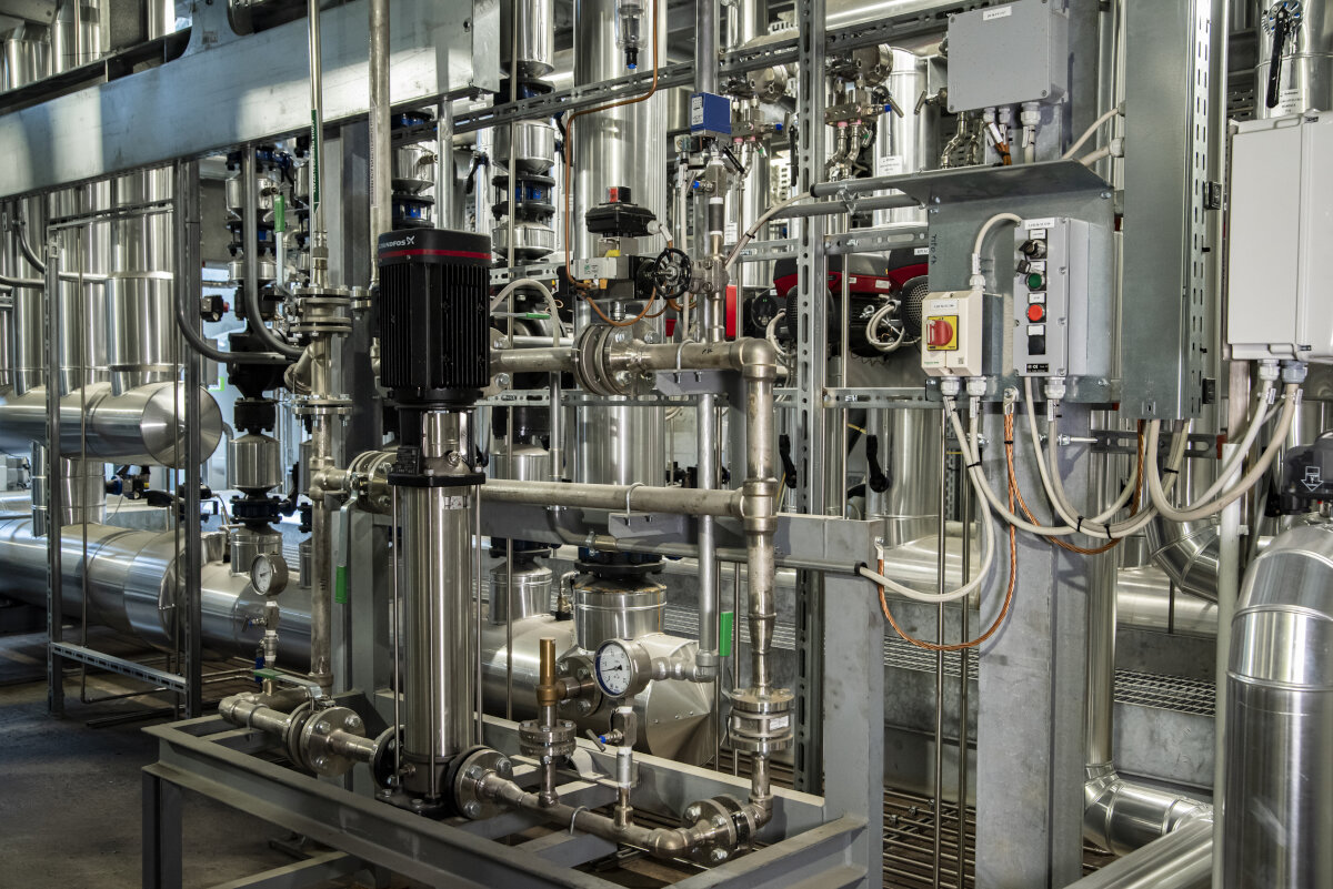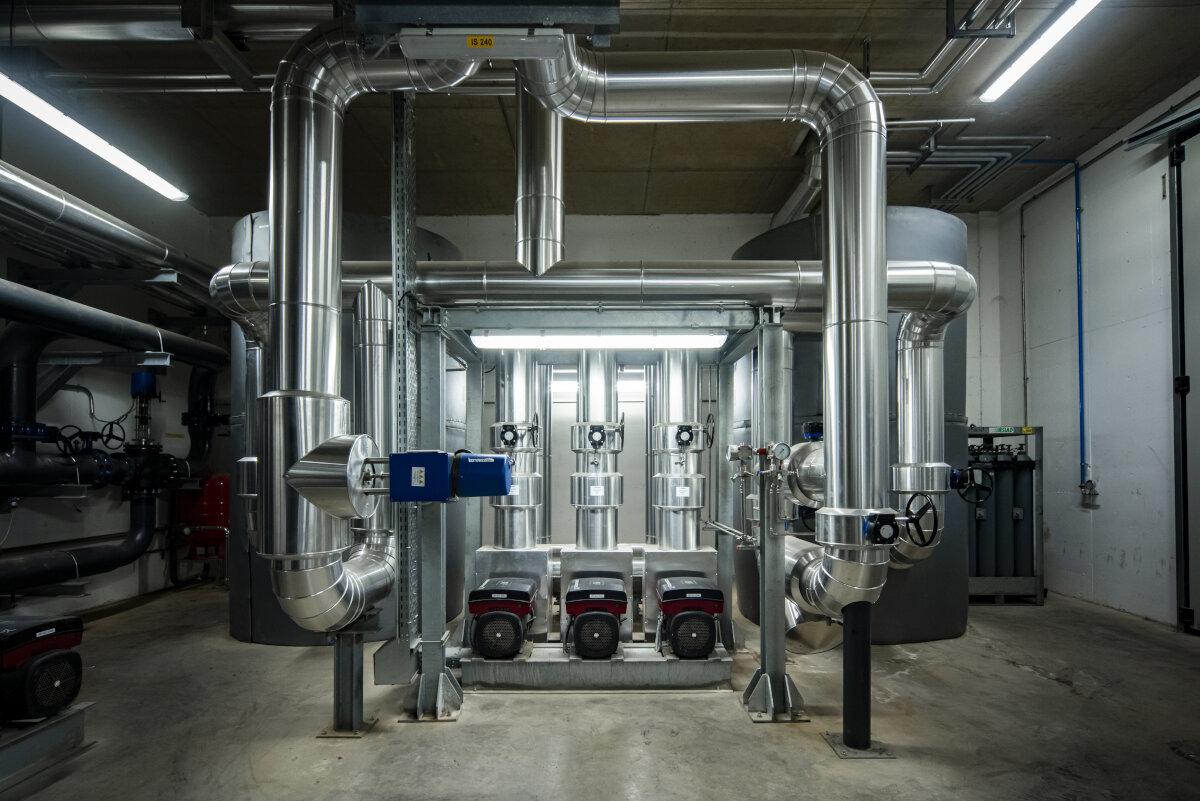 Costruzione ed installazione di sotto centrale prefabbricata di pompaggio e circolazione a servizio delle utenze dello stabilimento con collettori, valvolame, pompe e carpenterie in acciaio zincato;