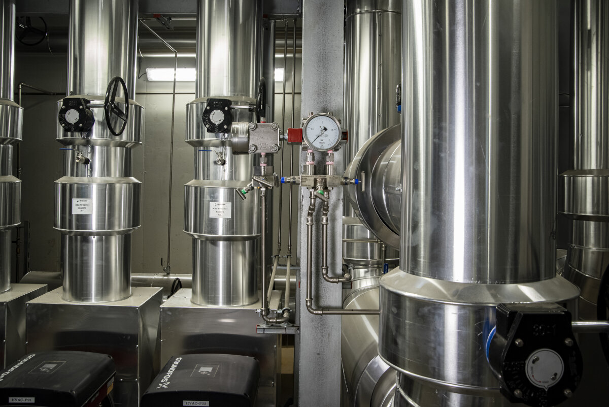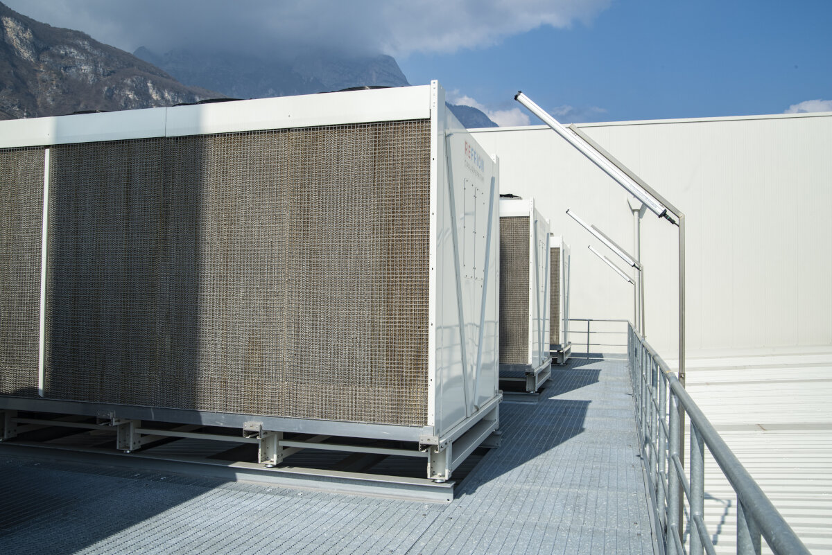 Costruzione ed installazione di impianti trattamento aria a servizio della zona di lavorazione ed imballaggio composti da 5 UTA da 30.000mc/h in copertura e canalizzazioni PAL in ambiente;