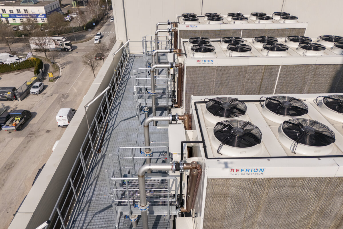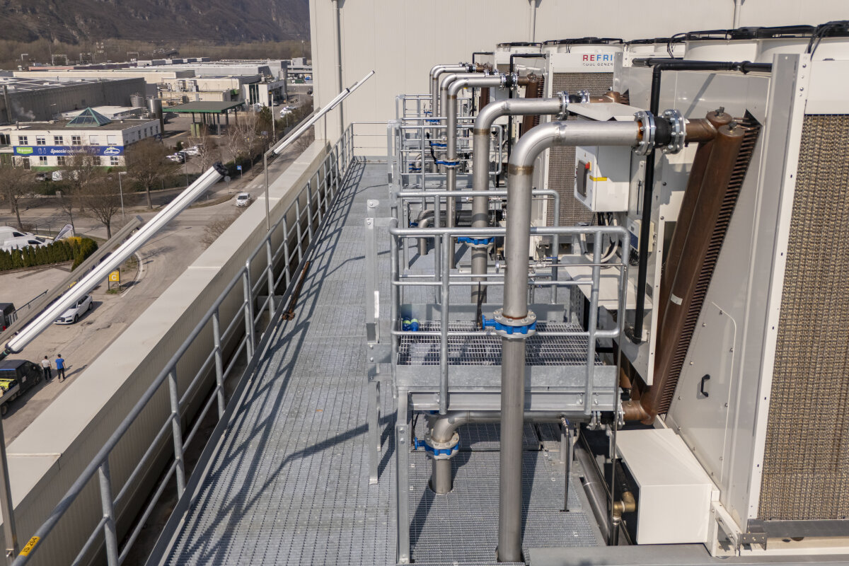 Costruzione di impianti di produzione energia termofrigorifera con recupero da forno in abbinamento ad assorbitore a bromuro di litio da 1.9MW ( fornitura Cliente ) e condensazione con tre dry cooler pot. 1.12MW cadauno ( fornitura Cliente );